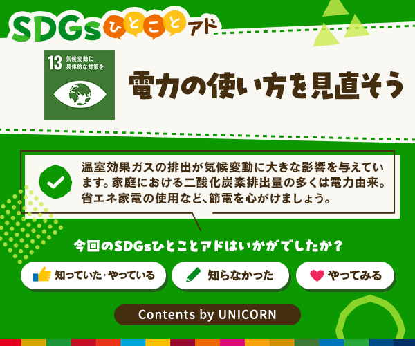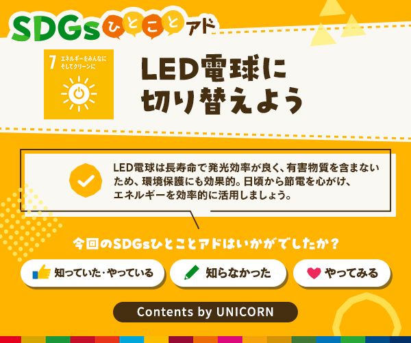 LED電球は普及が進んでいるものの、SDGs目標8への貢献に繋がることを「知らなかった」と答えた人は、全体の約4割と比較的多い結果となりました。エネルギーの持続的な確保に節電は重要。LED以外にも、こまめに電源を切るなど、節電対策は手軽にできるものが多いので、日頃から心がけエネルギーの無駄遣いをなくしていきましょう!
